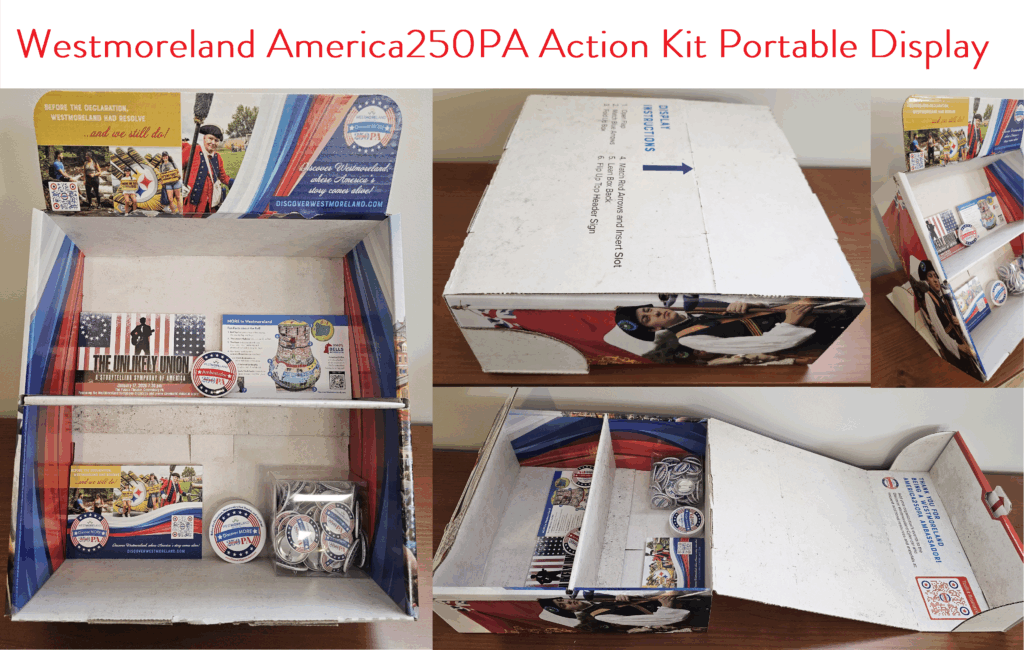 Community groups, libraries, schools, municipalities, and Westmoreland Heritage Partners hosting public or educational events are welcome to request a Westmoreland America250PA Toolkit while supplies last.